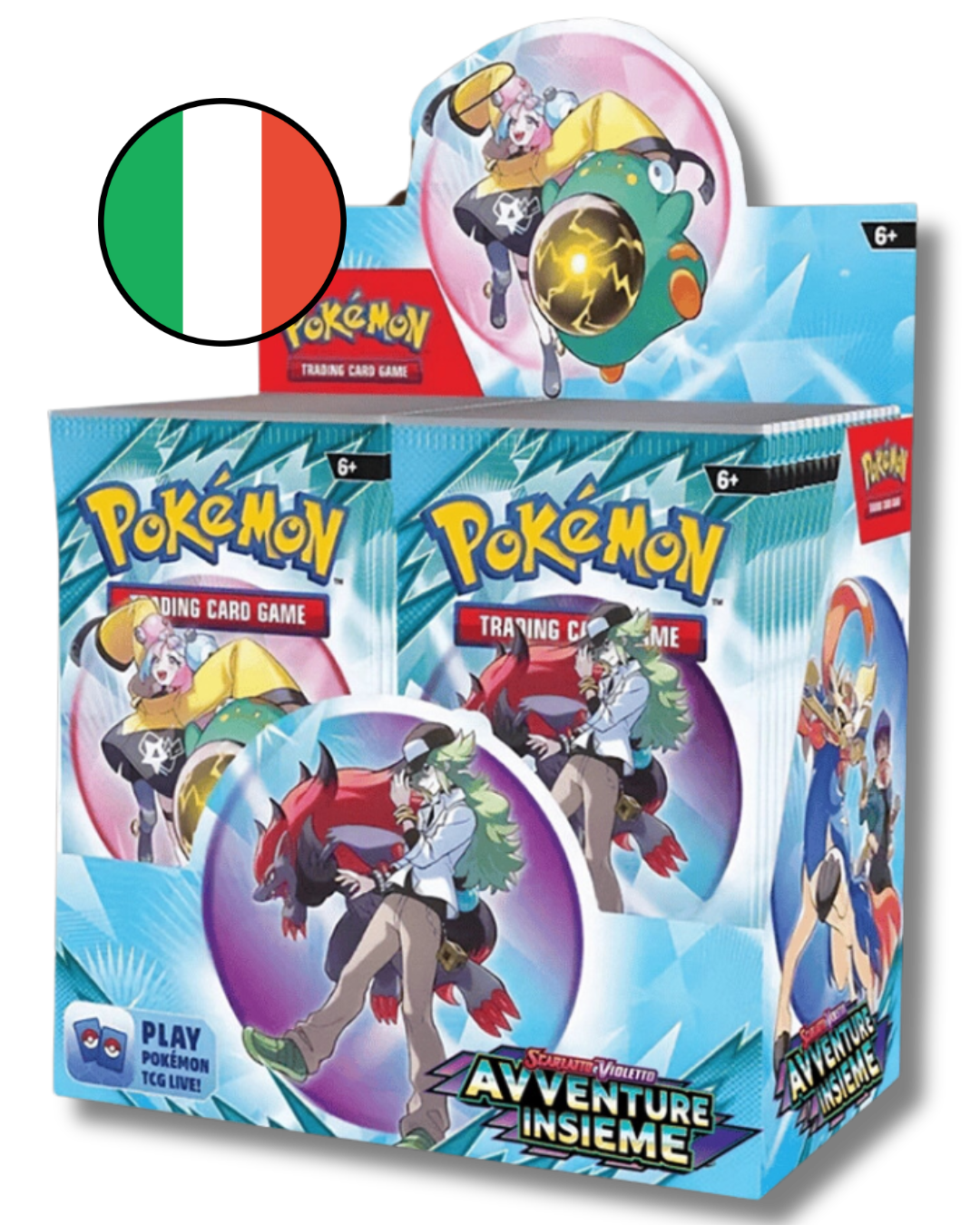 Include 36 buste dell'espansione Pokémon TCG: Scarlet & Violet - Avventure Insieme.